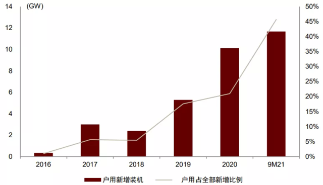 2021年1-9月我国户用光伏新增装机11.7GW,同比增长121.4%,在新增装机中占比达到45.7%;1-6月占比则达到58.9%,超越集中式电站,户用光伏需求拉动能力凸显。为什么要关注户用光伏?2021年户用光伏对需求拉动能力凸显。装机空间广阔或为1200GW-2200GW,当前屋顶渗透率低约为1.8%,目前户用光伏主要集中在山东、河北、河南三省,我们认为随着产业链价格回归合理,光伏组件价格[了解详情]